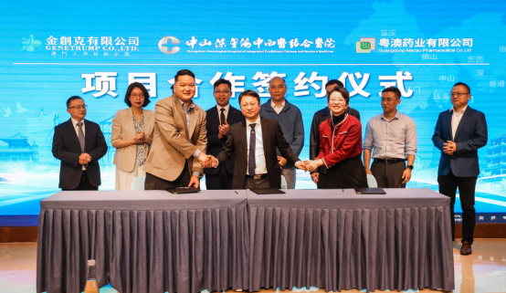 今天,金创克 (Genetrump) 的产业化征程迎来了历史性的里程碑!在澳门大学澳门转化医学创新研究院的推动下,我们与中山陈星海中西医结合医院、粤澳药业有限公司在中山市正式签署三方合作协议,共同启动粤澳医产学研中医药防治重大疾病项目。